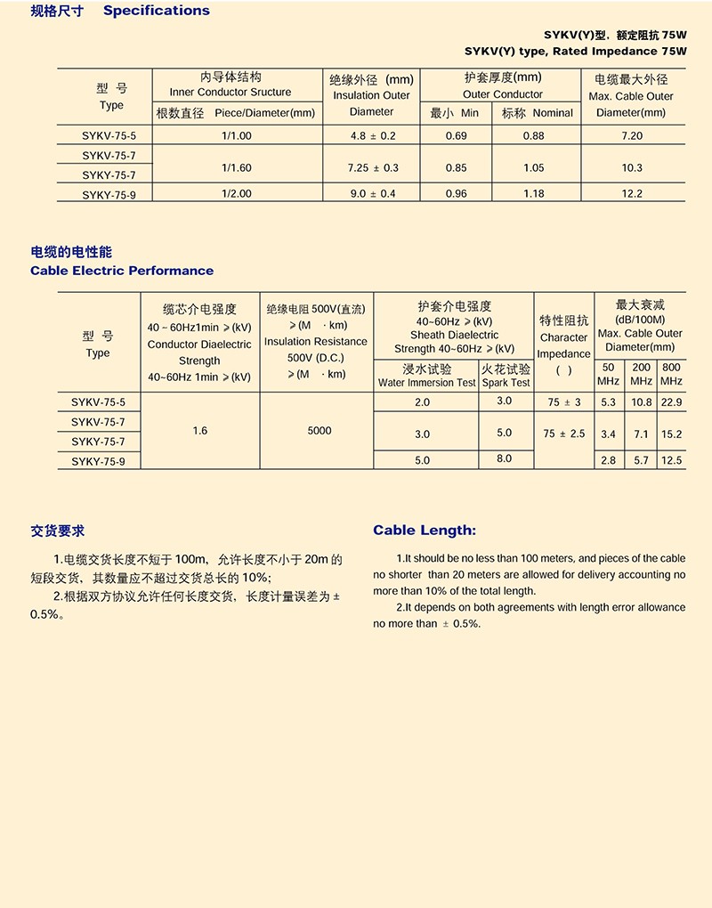 電纜分配系統用縱孔聚乙烯J緣同軸射