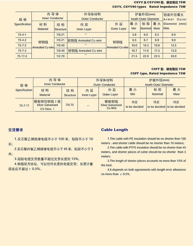 電纜分配系統用縱孔聚乙烯J緣同軸射