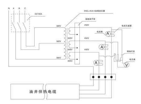 電路原理示意圖(見圖一) | 電伴熱加熱裝置示意圖 | |