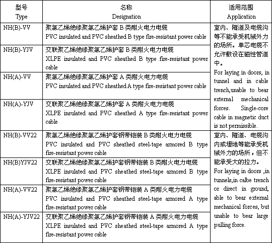 電纜的型號Type of cable